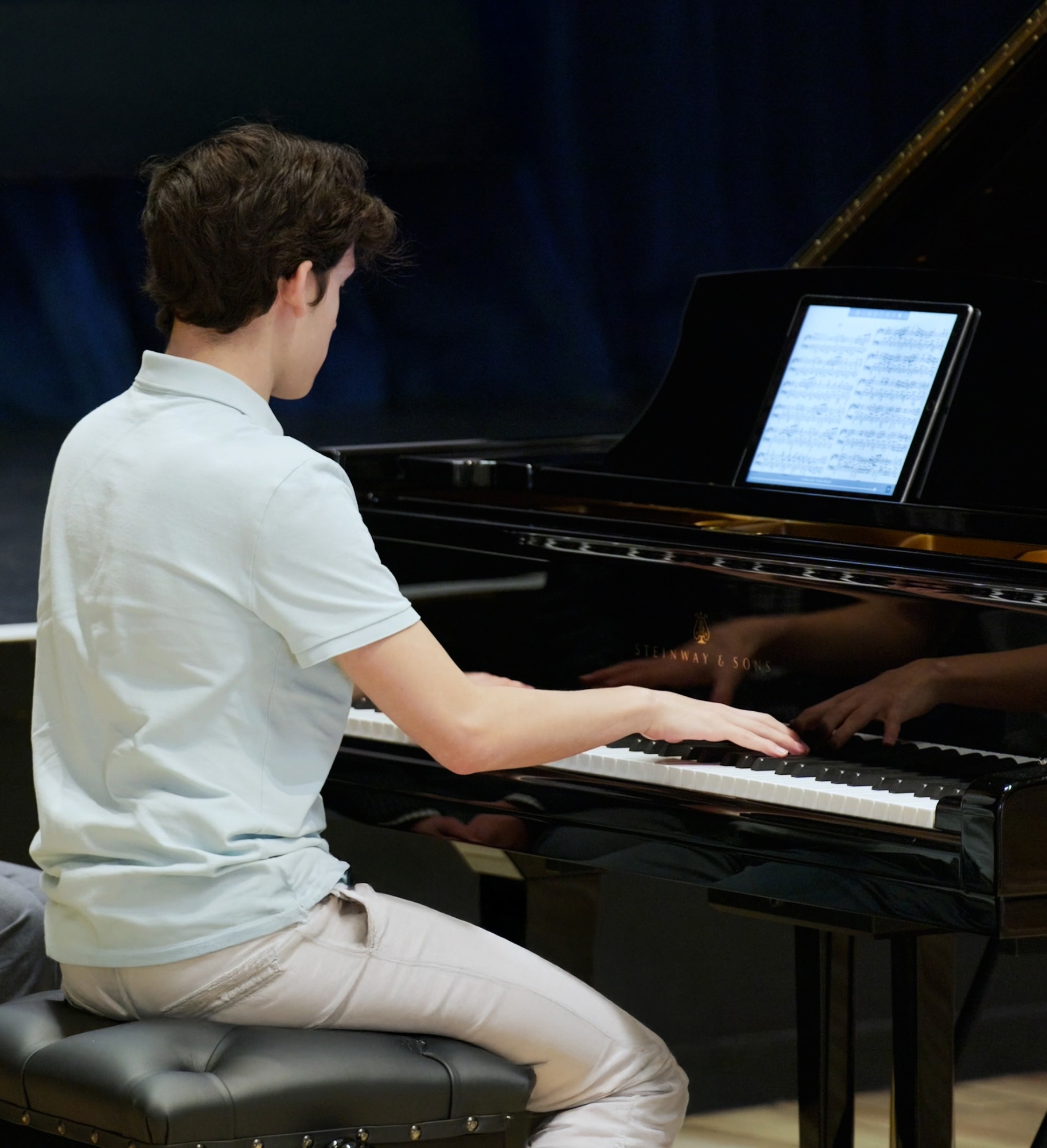 Pictured: A former North Cambridge Academy student whose place in our Sixth Form was funded by Costello Medical as part of our award-winning bursary partnership scheme. They are displaying their incredible piano skills, on a Steinway Model D Spirio kindly donated by a parent, Rose.